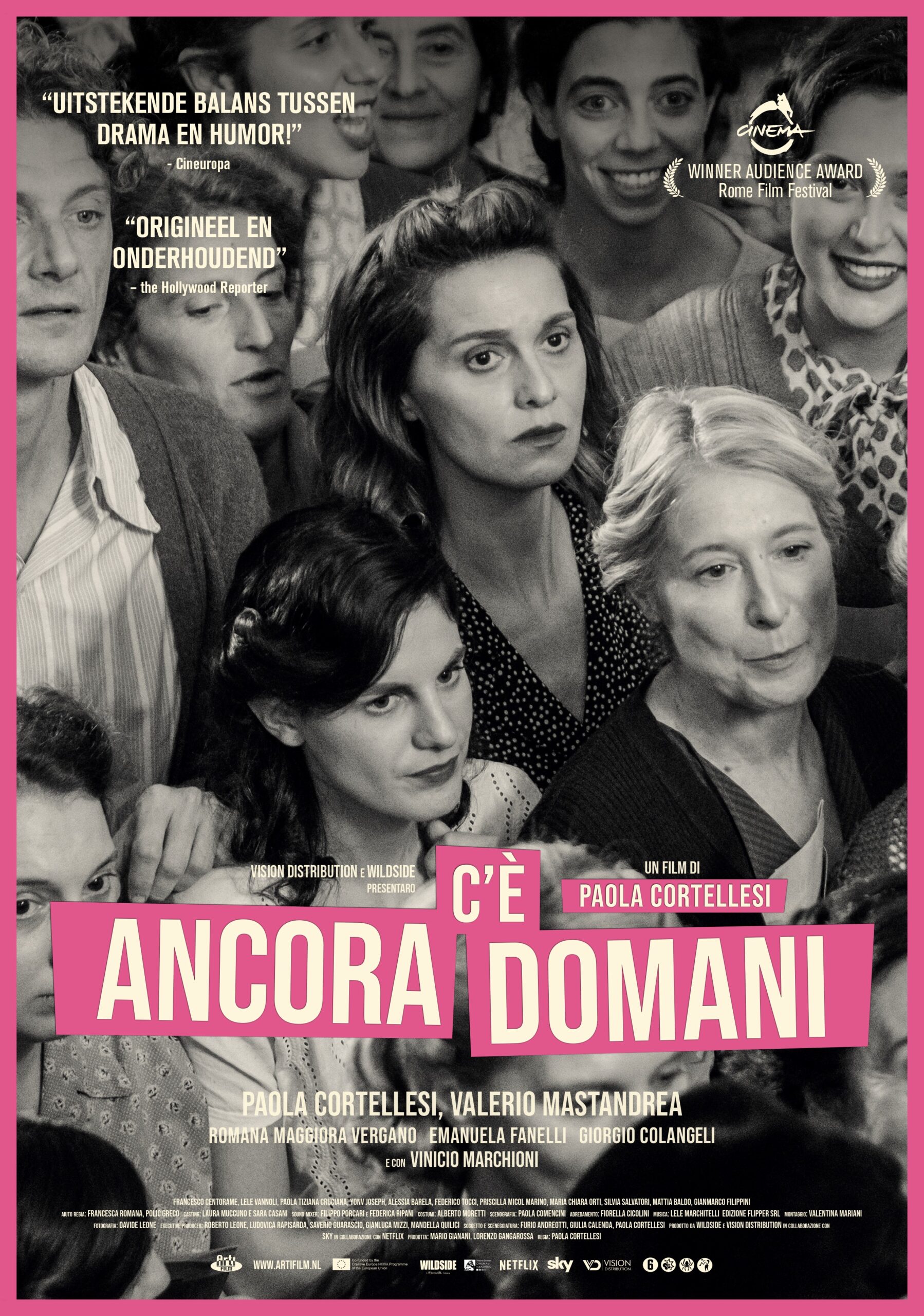 C’e Ancora Domani is de eerste speelfilm geregisseerd door Paola Cortellesi,, Zij wordt algemeen beschouwd als één van de meest veelzijdige artiesten in de Italiaanse filmwereld, Paola Cortellesi is actrice, scenarioschrijver en auteur, tevens winnares van diverse David di Donatello Awards . Ze maakt haar regiedebuut met een origineel drama dat zich afspeelt in de periode na de Tweede Wereldoorlog. De mannelijke hoofdrol is van Valerio Mastandrea, bekend uit “Perfetti Sconosciuti”.